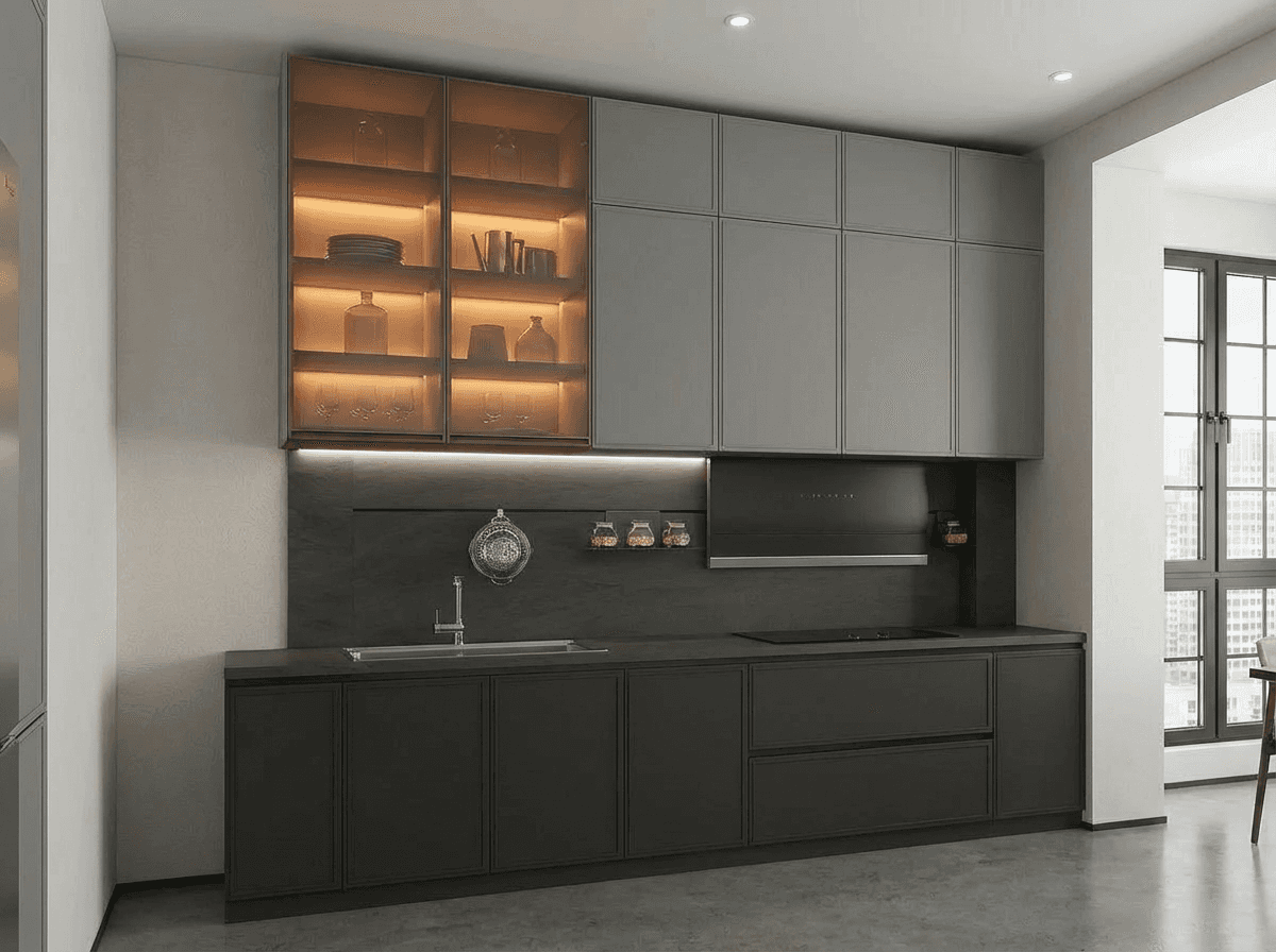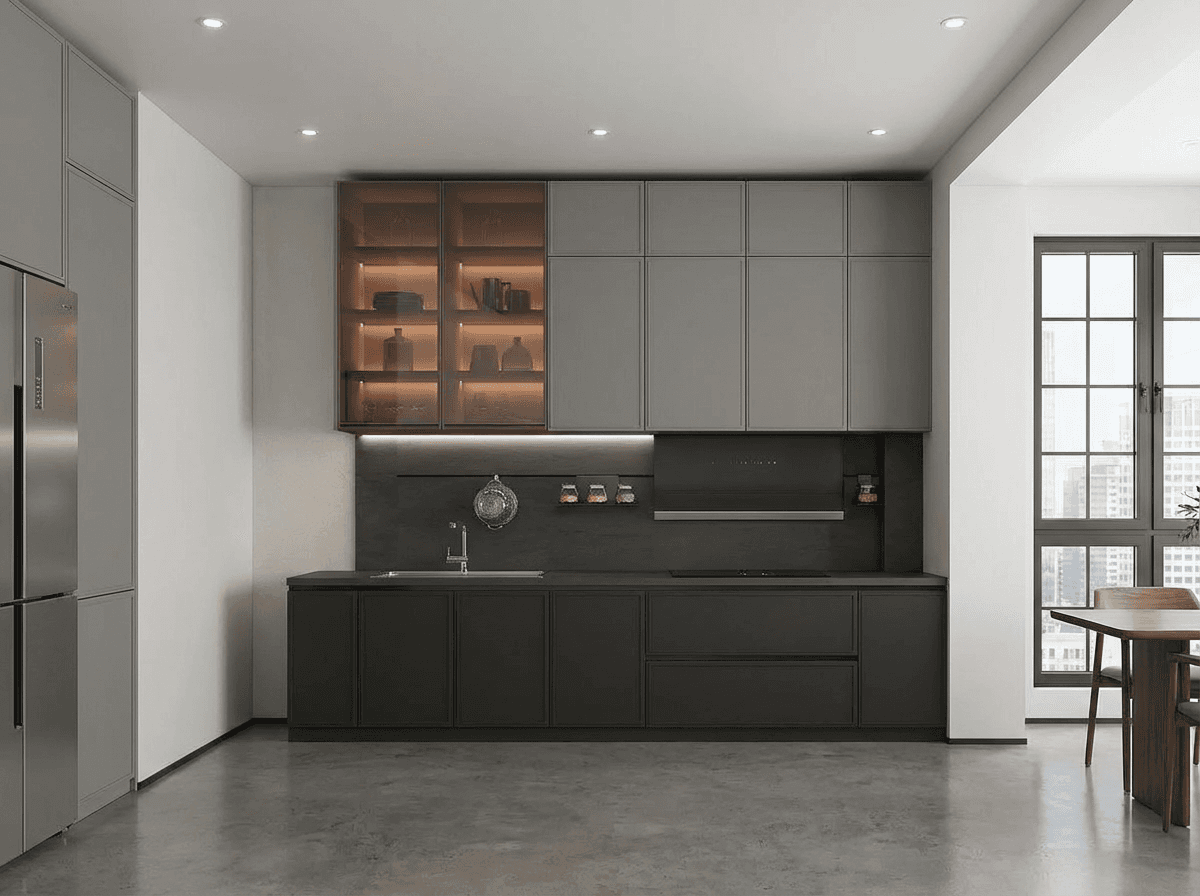 This kitchen project involved designing and installing fully custom floor-to-ceiling cabinetry for a Newport Beach homeowner. The brief called for a clean, modern aesthetic with maximum storage and seamless integration with the existing space.